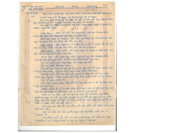 Thực tế là trước khi Sắc lệnh số 46/SL được ban hành thì quyền bào chữa của bị can, bị cáo đã được ghi nhận tại Sắc lệnh số 33C ngày 13/9/1945 về việc thiết lập các tòa án quân sự, cụ thể Điều 5 quy định: “Bị cáo có thể tự bào chữa hay nhờ một người khác bênh vực cho”. Mặt khác, quyền được tự bào chữa hoặc nhờ người bào chữa của bị cáo đã được thừa nhận và thể hiện tại Điều 67 Hiến pháp 1946 của nước Việt Nam Dân chủ Cộng hoà như sau: “Người bị cáo được quyền tự bào chữa lấy hoặc mượn luật sư”.